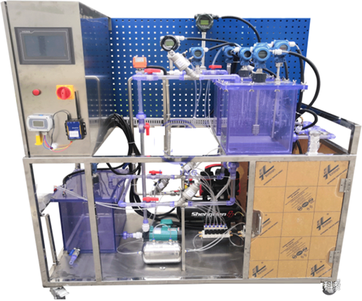 1、水循環(huán)控制功能:系統(tǒng)通過變頻器控制磁力水泵,將儲水箱的水抽取注入1#號水箱。系統(tǒng)控制器通過實時采集1#水箱液位的上下限,自動控制水泵的開關。通過實時液位差壓傳感器,控制連通閥門的開關,使得1#與2#水箱液位達到動態(tài)平衡。同時,實時采集液位、流量、壓力、水溫等系統(tǒng)參數(shù)。