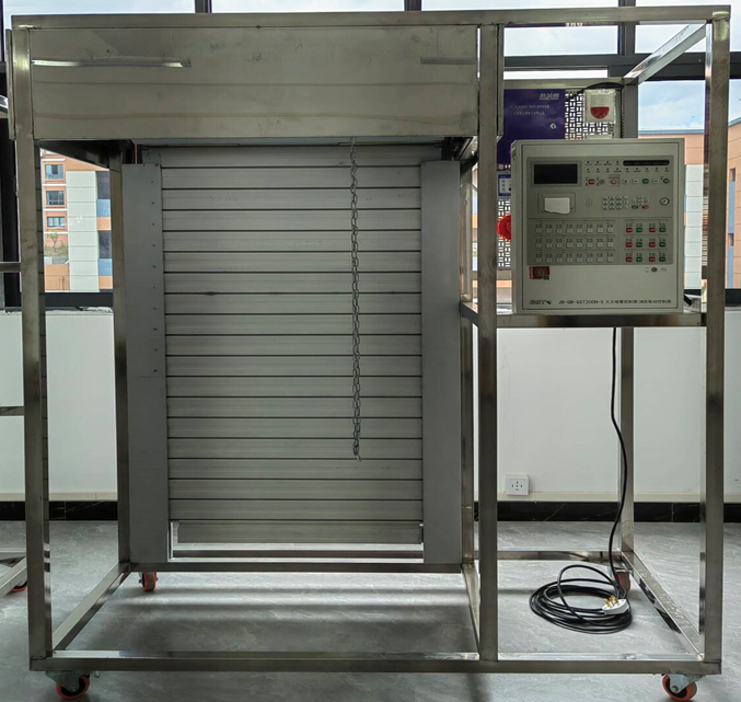 由模擬房間、卷簾門、卷簾門控制柜、火災報警控制器、火災探測器、以及相應的聯(lián)動控制系統(tǒng)組成