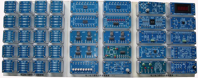 2、由學(xué)生獨(dú)立自主去搭建實(shí)驗(yàn)、實(shí)訓(xùn)電路,各種模塊精心配置,有多個(gè)應(yīng)用組合部件,模塊采用透明有機(jī)盒,兼作實(shí)物示教,一舉多得。電工電子單元模塊共有200多個(gè),其中不僅包括實(shí)訓(xùn)指導(dǎo)書項(xiàng)目所需的單元,還為學(xué)生可能進(jìn)行的創(chuàng)新與探索,配置了較齊全的單元。
