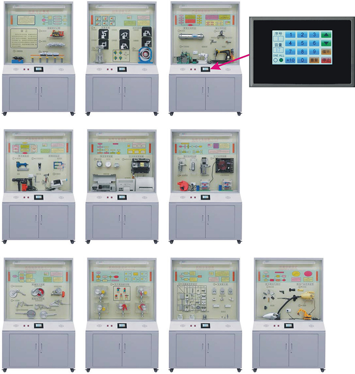 機械創(chuàng)新設(shè)計陳列柜按國際標準流行設(shè)計,采用各種新穎機電產(chǎn)品外,其余模型全部用鋁合金和有機玻璃等制作,每柜進行彩噴圖文說明,介紹機械創(chuàng)新設(shè)計的基本原理與方法,對提高機械創(chuàng)新意識與創(chuàng)新設(shè)計能力具有重大作用。是機械創(chuàng)新實驗室內(nèi)主要教學(xué)設(shè)備。