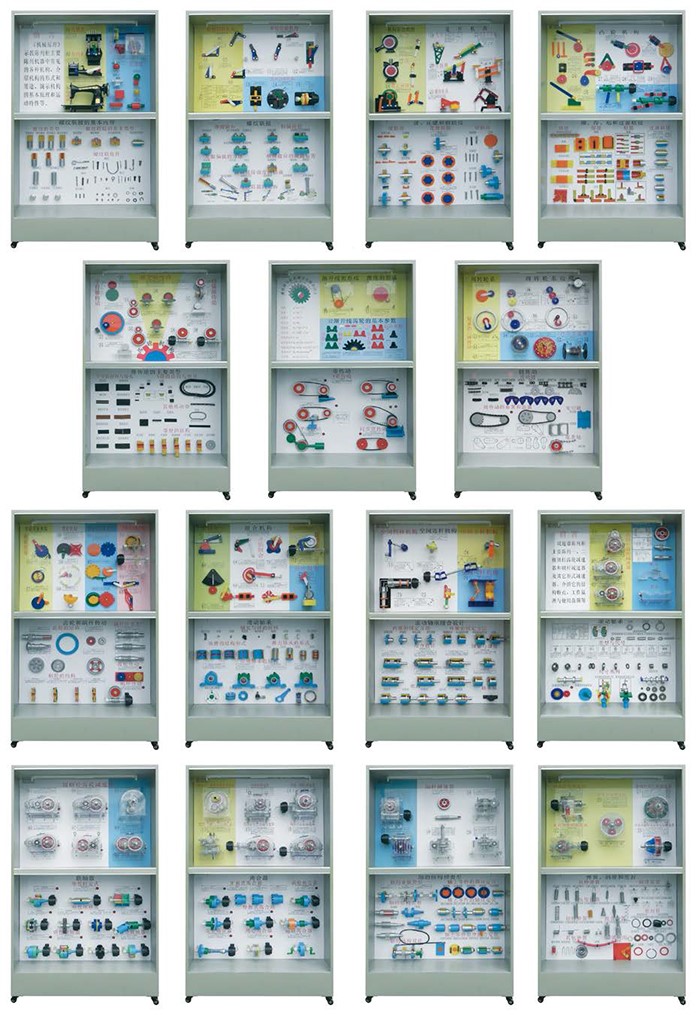 機(jī)械綜合式陳列柜該設(shè)備是根據(jù)大中專(zhuān)院校、職業(yè)學(xué)校的教學(xué)大綱設(shè)計(jì)的多功能機(jī)械綜合示教室是一套《機(jī)械原理》、《機(jī)械零件》、《減速器》共500余種模型,分三大類(lèi)合并成的機(jī)械電化教學(xué)設(shè)備。共15個(gè)柜,30個(gè)板面。該設(shè)備采用新型觸摸液晶屏電腦控制主控臺(tái)。Mp3解說(shuō),觸摸屏、遙控控制,聲控同步循環(huán)播放進(jìn)行演示;又根據(jù)教材,教學(xué)需要而任意選擇單獨(dú)運(yùn)轉(zhuǎn)演示。本產(chǎn)品的特點(diǎn):使作方便,占地面積小,結(jié)構(gòu)新穎實(shí)用,制作工藝更加美觀,整套設(shè)備演示形象逼真,運(yùn)行可靠,有效的提升了教學(xué)生動(dòng)性、趣味性及產(chǎn)品壽命。是一套現(xiàn)代化的機(jī)械課程示教室設(shè)備。
