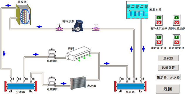 (1)、系統(tǒng)主要部件說(shuō)明組成:如壓縮機(jī)、卻水泵、冷卻風(fēng)機(jī)、風(fēng)機(jī)盤(pán)管、分水器、集水器、表冷器等。