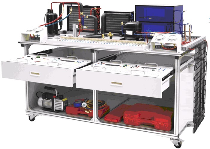 1.該裝置集制冷空調(diào)系統(tǒng)安裝、冰箱系統(tǒng)安裝、制冷系統(tǒng)電接線、壓力檢漏、抽真空、 充注制冷劑與運行調(diào)試于一體,包含了制冷系統(tǒng)維修的全部步驟,能滿足實訓(xùn)教學(xué)、實際工程訓(xùn)練及職業(yè)技能競賽的需要。