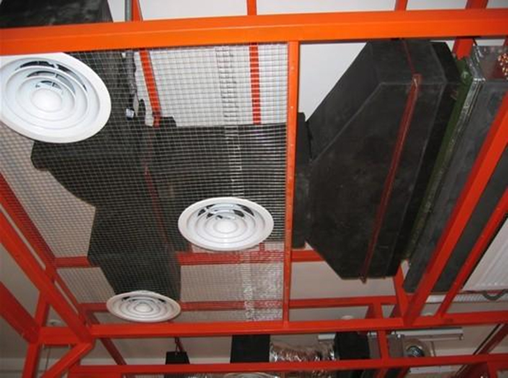 5、支撐系統(tǒng): 用于支撐或吊裝主機(jī)、水管、電線、控制器、風(fēng)機(jī)盤(pán)管、風(fēng)道、風(fēng)口等,采用活連接的形式拼裝而成。具體結(jié)構(gòu)根據(jù)現(xiàn)場(chǎng)實(shí)際情況確定。