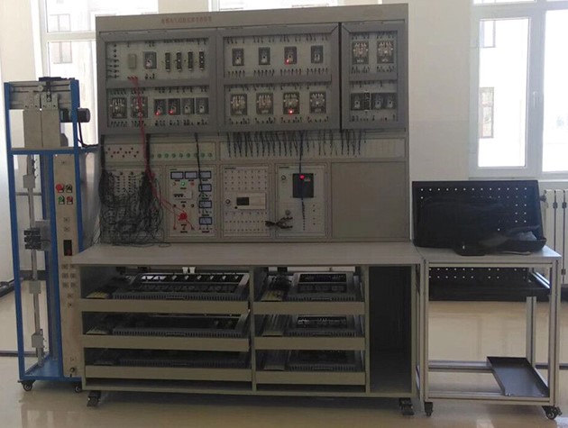 1、模型電梯設(shè)4層4站,由模擬井道架、轎廂、對(duì)重、曳引機(jī)、電梯門、門電機(jī)、各層站外呼盒及主要安全裝置組成,固定設(shè)置在實(shí)驗(yàn)臺(tái)側(cè)面。模擬井道架內(nèi)需配置用于檢測(cè)轎廂位置的樓層感應(yīng)器、平層感應(yīng)器(與實(shí)際電梯相似)等,其接線端子引至模擬井道架的插接孔上。井道架采用金屬材料為主體支架,有機(jī)玻璃封閉!镌O(shè)備必須采用臺(tái)式結(jié)構(gòu),設(shè)置活動(dòng)式抽屜電氣板,每層抽屜板均設(shè)置有公共接線板(總線型接線方式,總線連接點(diǎn)數(shù)必須達(dá)到120點(diǎn)以上),抽屜電氣板之間采用工業(yè)坦克鏈連接,公共抽屜板連線采用真實(shí)電梯多芯隨行電纜。