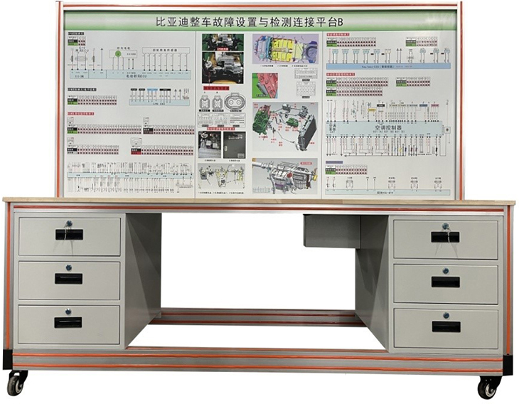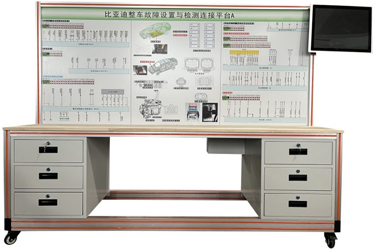 1.整車故障設(shè)置與檢測連接平臺(帶雙抽屜)1套:新能源三電電控系統(tǒng)1套,組合儀表等其他低壓電器電控1套;
