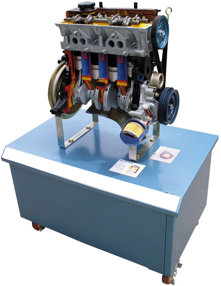 1.采用原廠發(fā)動(dòng)機(jī)實(shí)物總成進(jìn)行機(jī)構(gòu)切剖安裝在冷板沖壓的柜式臺(tái)架,充分展示發(fā)動(dòng)機(jī)機(jī)構(gòu)部分的內(nèi)外結(jié)構(gòu)。