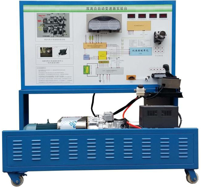 該設(shè)備采用翻新邁騰B8L 2021款電控雙離合器自動變速器總成為基礎(chǔ),可調(diào)速三相異步電動機做動力源,對雙離合器自動變速器進行檔位顯示、空檔起動、前進檔及倒檔運行等工況實踐操作。真實展示電控雙離合器自動變速器組成結(jié)構(gòu)和工作過程。