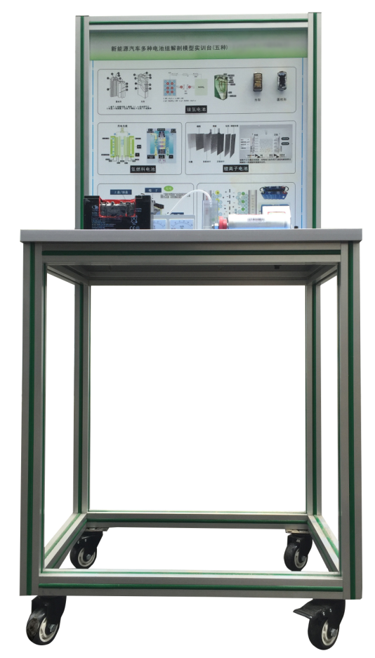 新能源動力電池(鋰離子電池(3.2AH10AH,3.7AH10AH)、鎳氫電池(5號1.5v)、燃料電池(發(fā)電電壓0V-0.9V,發(fā)電面積25mm*25mm)、鉛酸電池(12V9AH)、超級電容器(2.8V3000F)),可移動平臺和原理示教板。