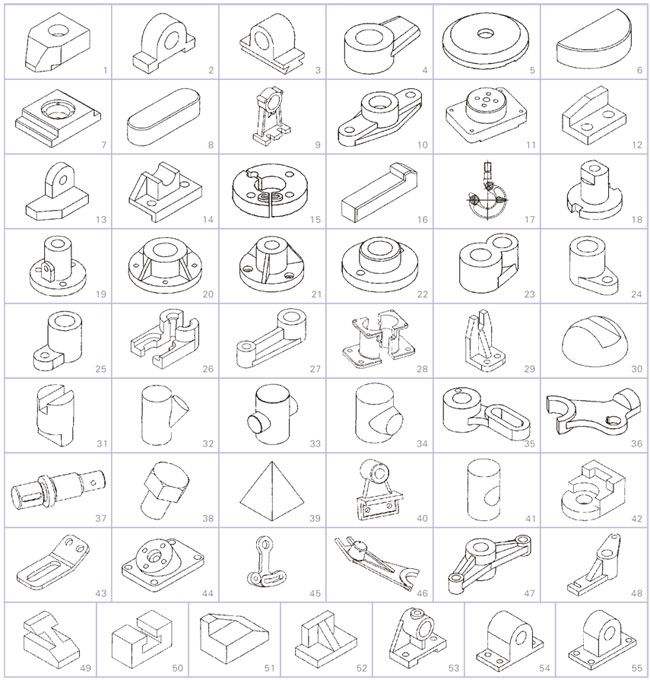 速成制圖模型是根據(jù)勞動出版社和機(jī)械工業(yè)出版社《機(jī)械制圖》專業(yè)教材精選具有代表性的各種機(jī)械零(部)件圖樣制成配有立體圖(剖視圖)的標(biāo)準(zhǔn)模型。