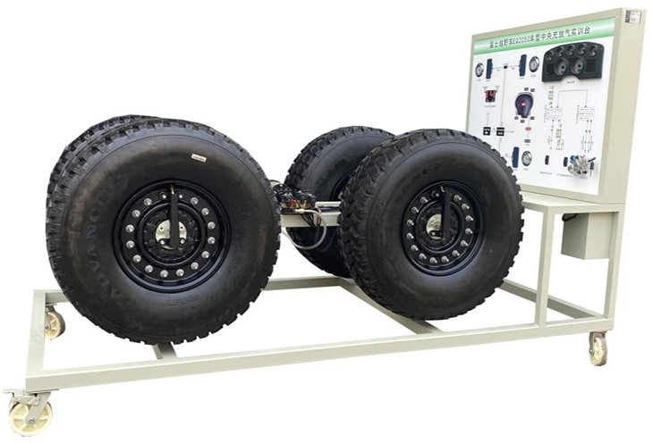 該設(shè)備采用陜汽2190N 汽車中央充放氣系統(tǒng)總成為基礎(chǔ),全面展示了中央充放氣系統(tǒng)的組成結(jié)構(gòu)和工作過(guò)程。