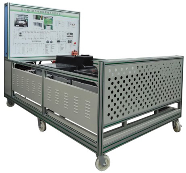 (比亞迪e5 EV450純電動(dòng)汽車(chē)) 鋰動(dòng)力電池組、電池管理系統(tǒng)BMS、、維修開(kāi)關(guān)、輔助蓄電池(12V45AH)、高壓配電箱、漏電傳感器、車(chē)載充電機(jī)、國(guó)標(biāo)充電插座與充電槍、直流接觸器(包含充電繼電器、總正繼電器、總負(fù)繼電器、預(yù)充繼電器)、急停開(kāi)關(guān)與電源總開(kāi)關(guān)、一體化全鋁合金型材搭建的移動(dòng)臺(tái)架(1500×700×1700mm ,帶自鎖腳輪裝置,帶安裝檢測(cè)端子的原理面板1448×940mm)、故障考核系統(tǒng)、設(shè)備操作說(shuō)明書(shū)。