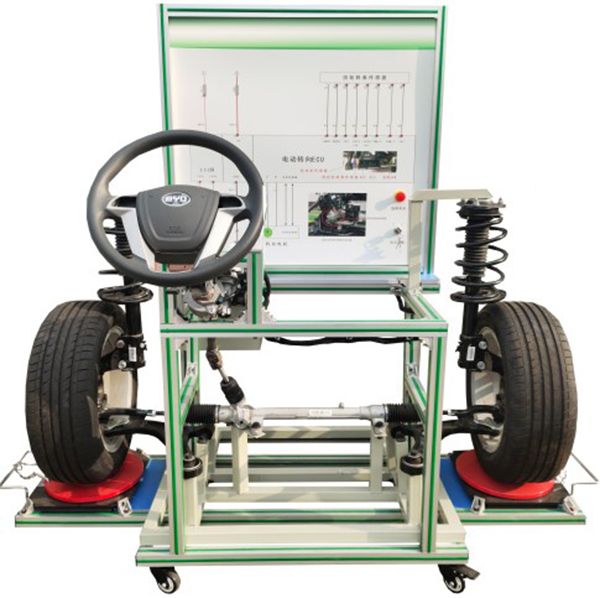 (比亞迪e5 EV450純電動(dòng)汽車(chē)) 動(dòng)力轉(zhuǎn)向控制電腦(ECU)、診斷座、點(diǎn)火開(kāi)關(guān)、前橋懸掛機(jī)構(gòu)、方向盤(pán)、轉(zhuǎn)向柱、電動(dòng)助力方機(jī)、轉(zhuǎn)向拉桿、前左右車(chē)輪總成、信號(hào)模擬裝置、扭矩傳感器、扭矩傳感器信號(hào)電壓數(shù)顯表、故障模擬與排除裝置、前輪左右轉(zhuǎn)盤(pán)、一體化全鋁合金型材搭建的移動(dòng)臺(tái)架(1500×1000×1700mm ,帶自鎖腳輪裝置,帶安裝檢測(cè)端子的原理面板948×898mm)、設(shè)備操作說(shuō)明書(shū)。