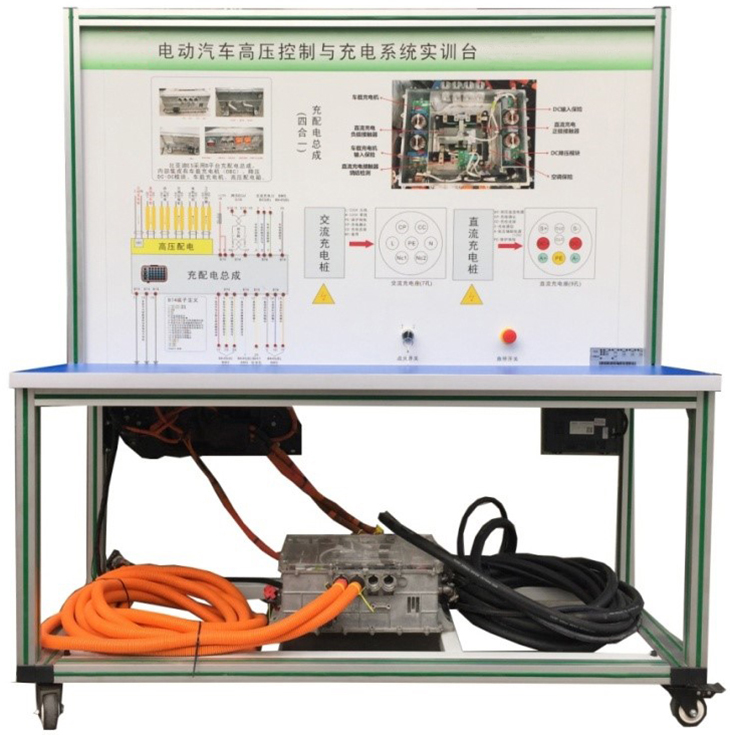國(guó)標(biāo)充電槍與充電座、(比亞迪E5)高壓配電箱(帶各類(lèi)高壓繼電器)、漏電傳感器模塊、絕緣傳感器模塊、安全維修塞模塊、漏電模擬操作單元、高壓安全系統(tǒng)操作單元、操作控制臺(tái)、訓(xùn)練控制按鈕、直流接觸器(包含充電繼電器、總正繼電器、總負(fù)繼電器、預(yù)充繼電器)、一體化全鋁合金型材搭建的移動(dòng)臺(tái)架(1500×700×1700mm 帶自鎖腳輪裝置,帶安裝檢測(cè)端子的原理面板,面板1448×940mm)、設(shè)備操作說(shuō)明書(shū)。