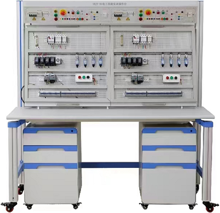 電氣安裝與維修實(shí)訓(xùn)考核裝置是根據(jù)工廠電氣安裝和室內(nèi)電氣安裝等維修 電工和電氣安裝工實(shí)訓(xùn)鑒定要求開(kāi)發(fā)的一種通用實(shí)訓(xùn)平臺(tái)。 適合于各類(lèi)職業(yè)院校 和技工學(xué)校維修電工、 電氣安裝工、水電工等有電氣實(shí)訓(xùn)要求的相關(guān)專(zhuān)業(yè)的作為 公共實(shí)訓(xùn)平臺(tái)使用。 采用鋼制網(wǎng)孔板和鋼制專(zhuān)用型材組接而成,安裝有自鎖式腳輪,方便移動(dòng)和使用。裝 置表面噴塑,色彩穩(wěn)重氣派。電氣安裝與維修實(shí)訓(xùn)裝置設(shè)計(jì)高度以人站在一級(jí)人字梯即可方便操作的高度,既安 全又能使使用者感受到施工現(xiàn)場(chǎng)環(huán)境。 橫向、 叢向?qū)挾群线m, 可以模擬現(xiàn)場(chǎng)線(xiàn)路的轉(zhuǎn)向布置。