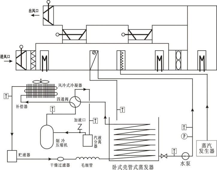 綜合性;采用國內(nèi)先進(jìn)的二次回風(fēng)系統(tǒng),在同一臺實(shí)驗(yàn)臺上完整的完成8種制冷系統(tǒng)工況