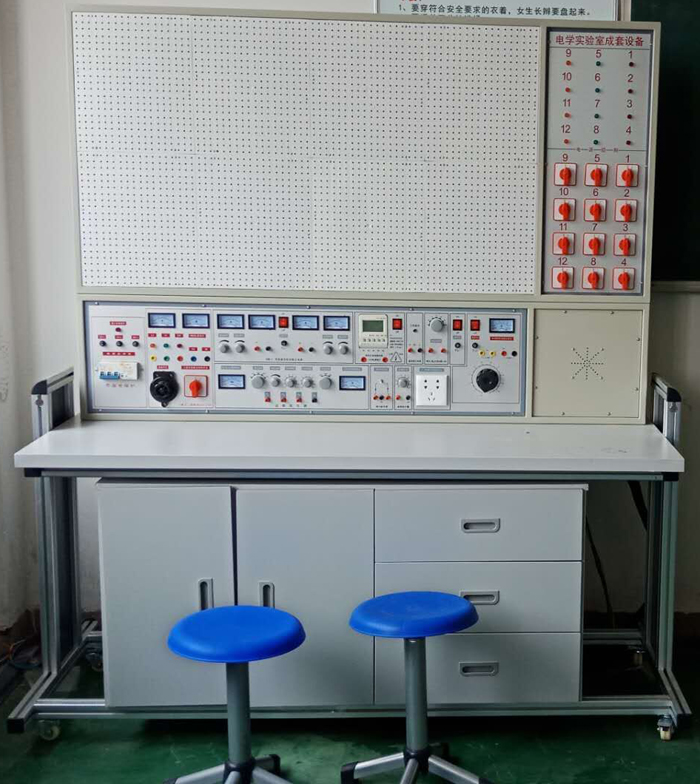 電子實(shí)驗(yàn)臺(tái)具有較完善的安全保護(hù)措施,較齊全的功能(詳見(jiàn)實(shí)驗(yàn)臺(tái)結(jié)構(gòu)簡(jiǎn)介)。實(shí)驗(yàn)桌中央配有通用電路板,電路板注塑而成,表面布有九孔成一組相互聯(lián)通的插孔,元件盒在其上任意拼插成實(shí)驗(yàn)電路,元件盒盒體透明,直觀性好,盒蓋印有永不褪色元件符號(hào),線條清晰美觀。盒體與盒蓋采用較科學(xué)的壓卡式結(jié)構(gòu),維修拆裝方便。元器件放置在實(shí)驗(yàn)桌下邊左右柜內(nèi),大大提高了管理水平,規(guī)劃化程度,大大減輕了教師實(shí)驗(yàn)準(zhǔn)備工作。