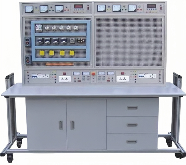 電工電子實(shí)驗(yàn)臺(tái)“通用電工實(shí)驗(yàn)設(shè)備”是根據(jù)職業(yè)學(xué)校、技工學(xué)校、中等專業(yè)學(xué)校的電工技術(shù)基礎(chǔ)、電工技能訓(xùn)練、電工學(xué)等有關(guān)教學(xué)實(shí)驗(yàn)大綱的要求而設(shè)計(jì)的。內(nèi)容有直流電路、交流電路、正弦與正弦電路、磁與電磁。該裝置符合勞動(dòng)部、機(jī)電部頒發(fā)的中級(jí)技術(shù)工人考核標(biāo)準(zhǔn)電工部分的內(nèi)容,是理論學(xué)習(xí)、實(shí)驗(yàn)驗(yàn)證、技能訓(xùn)練為一體的現(xiàn)代化電工實(shí)驗(yàn)成套設(shè)備。電工電子實(shí)驗(yàn)臺(tái)培養(yǎng)學(xué)生了解和掌握電子元器件及電工電子基本原理的能力,培養(yǎng)學(xué)生熟練使用電子儀器儀表的能力,為今后的專業(yè)實(shí)驗(yàn)、實(shí)訓(xùn)打下堅(jiān)實(shí)的基礎(chǔ)。電工電子實(shí)驗(yàn)室主要儀器設(shè)備:電工電子實(shí)驗(yàn)臺(tái)、常用儀器儀表等。電工電子實(shí)驗(yàn)臺(tái)主要實(shí)驗(yàn)或?qū)嵱?xùn)項(xiàng)目:分別開設(shè)強(qiáng)電和弱電的課程實(shí)驗(yàn)和課程設(shè)計(jì)。實(shí)驗(yàn)涉及課程包括電工學(xué)、模擬電路技術(shù)和數(shù)字電路技術(shù),主要實(shí)訓(xùn)課程有常用半導(dǎo)體材料及伏安特性的測(cè)試、集成放大電路、直流穩(wěn)壓電路、示波器的使用、數(shù)碼顯示電路、集成觸發(fā)器特性、555定時(shí)器、單穩(wěn)態(tài)觸發(fā)器、等非電類專業(yè)基礎(chǔ)實(shí)驗(yàn)課。通過驗(yàn)證性、設(shè)計(jì)性相結(jié)合的實(shí)驗(yàn)項(xiàng)目,使學(xué)生掌握基本電路模塊的設(shè)計(jì)、測(cè)試技術(shù),通過理論知識(shí)分析實(shí)驗(yàn)現(xiàn)象和排除故障的過程,使學(xué)生了解了系統(tǒng)設(shè)計(jì)與工程設(shè)計(jì)過程,提高了學(xué)生的實(shí)際動(dòng)手能力。電工電子實(shí)驗(yàn)臺(tái)、電子綜合實(shí)訓(xùn)設(shè)備,同時(shí)包含示波器、數(shù)字萬用表等配套設(shè)備?砷_設(shè)我校醫(yī)學(xué)影像技術(shù)專業(yè)和醫(yī)用電子儀器與維護(hù)專業(yè)的《電子學(xué)基礎(chǔ)》、 《電工技術(shù)》、 《模擬電子技術(shù)》及《數(shù)字電子技術(shù)》等工學(xué)基礎(chǔ)類課程的實(shí)驗(yàn)實(shí)訓(xùn)。