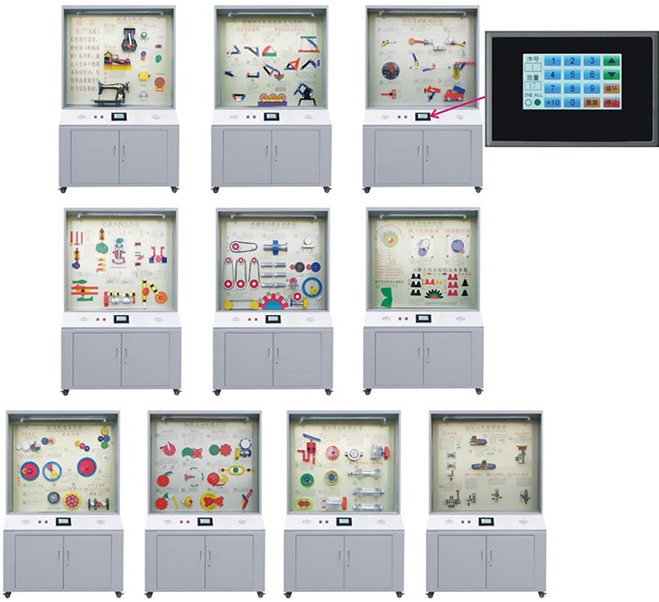 根據(jù)全國技工學(xué)校機械類通用教材《機械基礎(chǔ)》示教陳列柜是一套電化教學(xué)設(shè)備。本陳列柜共分十個柜,陳列柜通過機械模型或?qū)嵨,配合相?yīng)的圖文資料,形象地展示與解說機械基礎(chǔ)的基本知識,加強學(xué)生對通用機械基礎(chǔ)的類型、結(jié)構(gòu)特點及其設(shè)計的感性認知,為進一步學(xué)習機械基礎(chǔ)奠定基礎(chǔ)。