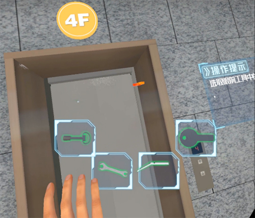 在使用系統(tǒng)的過程中,可根據(jù)操作提示,在正確的工具或物料中選擇,并放置在正確的位置上?墒褂檬直M行物體之間的交互,體驗真實場景中的工作過程。