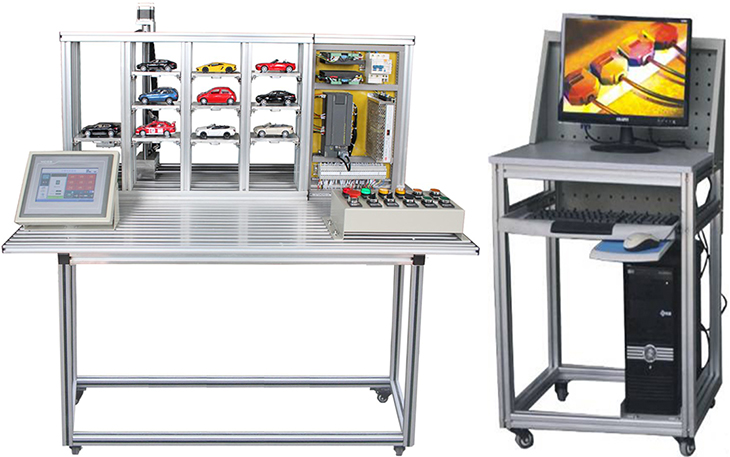 本立體倉庫實訓系統(tǒng)可以完成車輛的手動和自動迫車、車位信息狀態(tài)顯示。它主要包括以下幾個部分:鋁型材臺面、觸摸屏、倉庫本體、車盤、電氣板、氣動二聯(lián)件、按鈕盒和二維運動機構(gòu)等。