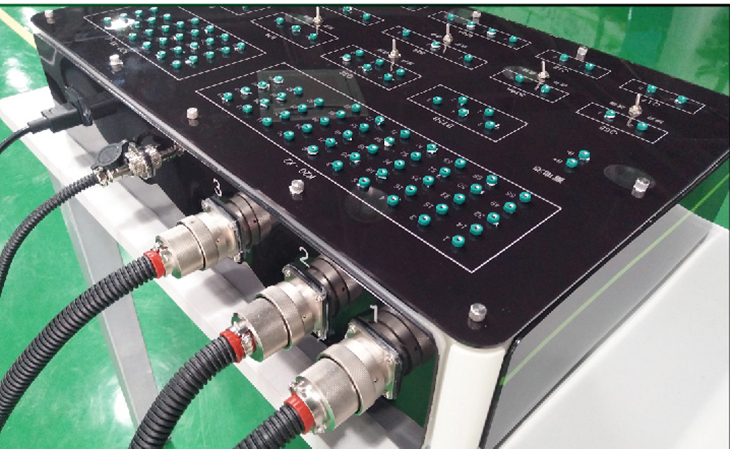 4、機(jī)械故障設(shè)置終端通過更換面板上不同功能的插件和短路跨接線實現(xiàn)斷路、線路虛接、對地短路、對正極短路故障設(shè)置,在機(jī)械故障設(shè)置終端不變的情況下更換不同的連接線束和檢測面板可實現(xiàn)不同系統(tǒng)的實訓(xùn)操作;