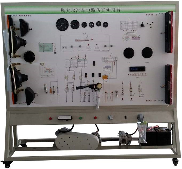 2.設備面板采用耐創(chuàng)擊、耐污染、防火、防潮的高級鋁塑板,表面經特殊工藝噴涂底漆處理;面板打印有永不褪色的彩色電路圖;學員可直觀對照電路圖和實物,認識和分析汽車整車電器各系統(tǒng)的工作原理。