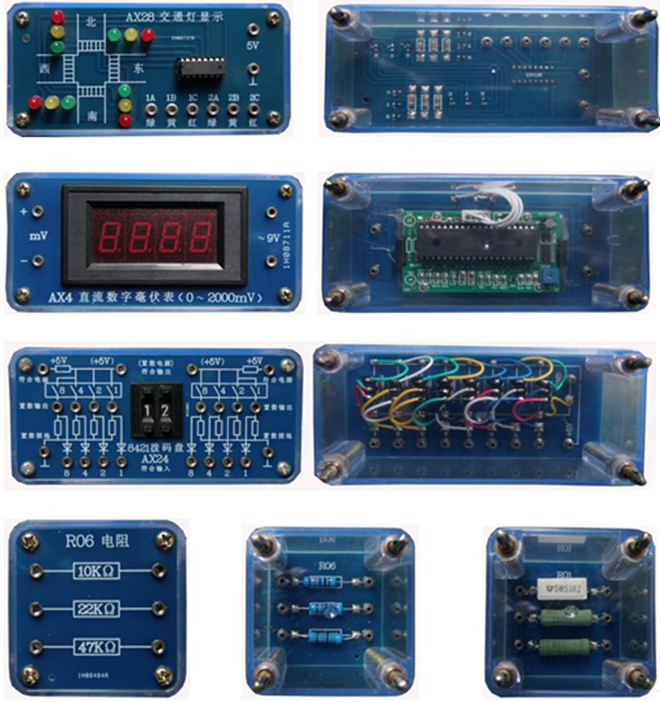 (透明電工電子元件模塊示例圖,共9塊板,140多只透明有機(jī)塑料封閉元件盒)