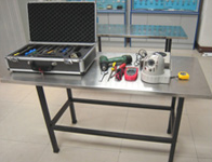 在操作臺上進行線槽、線管、橋架等材料加工。