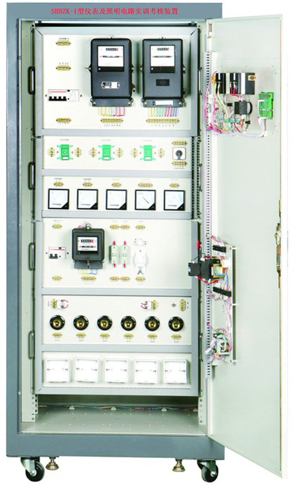 儀表及照明電路實訓考核裝置是按照勞動和社會保障部頒發(fā)的"工人等級標準"和"職業(yè)技能鑒定"規(guī)范要求而設計的,它集培訓、理論、實際操作和考核鑒定為一體的多功能設備。該裝置采用實際應用的配電柜為主體,合理利用柜體的雙面空間,進行合理布局,配置可靠的元器件。它既可用于對電工儀表和照明電路的操作實訓。也可作為初、中、高級電工技能考核設備。