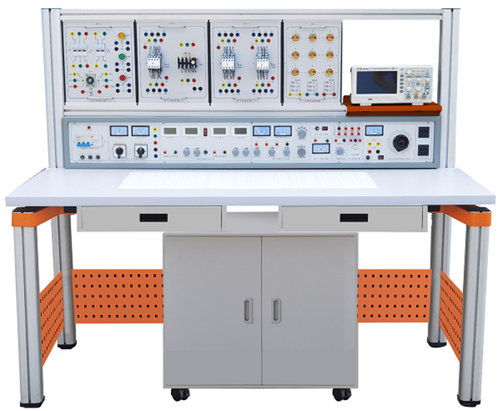 裝置由電源控制箱、實(shí)驗(yàn)桌(裝有九孔萬(wàn)能插件板)、電氣控制實(shí)驗(yàn)掛箱,實(shí)驗(yàn)掛箱支架、移動(dòng)矮柜、示波器架、透明創(chuàng)新實(shí)驗(yàn)?zāi)K(盒)、學(xué)生凳等組成。實(shí)驗(yàn)裝置支架與實(shí)驗(yàn)桌可組合、可拆裝。支架與桌腳一體,鋁合金結(jié)構(gòu);電氣控制實(shí)驗(yàn)掛箱與各實(shí)驗(yàn)?zāi)K可根據(jù)實(shí)驗(yàn)需求自由組合實(shí)驗(yàn)。