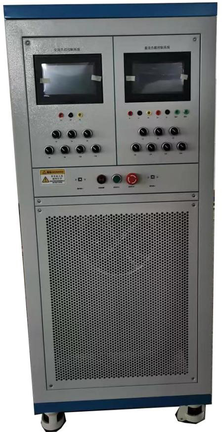 5、充電負載箱包含國標直流充電口與交流充電口,直流充電時能按照國標要求與充電樁進行通信,負載箱集成觸摸顯示屏,用于設置充電時負載電流大小,負載功率,負載溫度等信息。