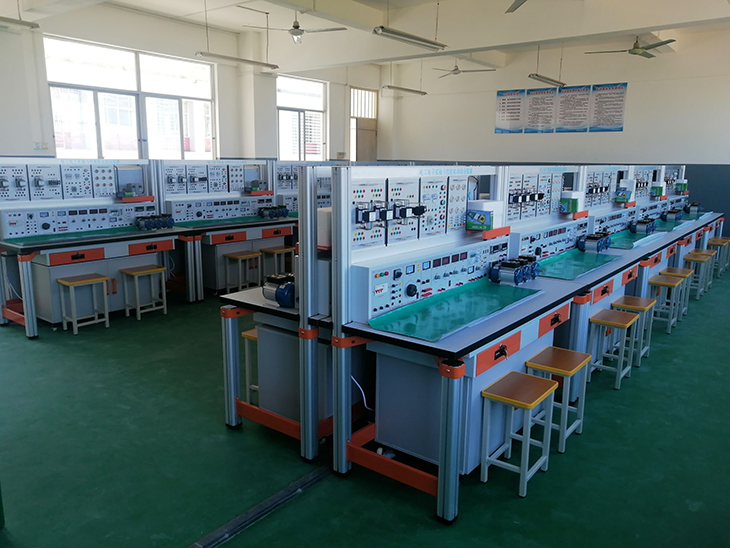 電工技術實訓室設備能夠滿足《電氣控制與PLC》、《電機學》等專業(yè)主干課程實驗教學工作,還為學生進行相關的課程設計、工程實踐、畢業(yè)論文等提供實驗平臺。