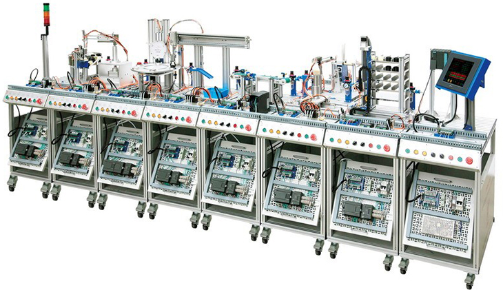 模塊式柔性自動化生產線實訓系統(tǒng)八個工作站各自都有一套PLC主機,可分成八個完全獨立的工作站進行實訓,在對各單元生產工藝和電氣控制系統(tǒng)的構成熟悉后,通過PLC編程可完成:
