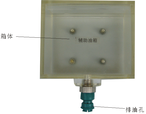 2、輔助油箱采用了封閉箱體結(jié)構(gòu),外殼材料采用進(jìn)口透明有機(jī)玻璃,在輔助油箱的上端配有螺旋蓋油孔,螺旋蓋上設(shè)有排氣孔。下端有透明有機(jī)材料制造的排油閥。