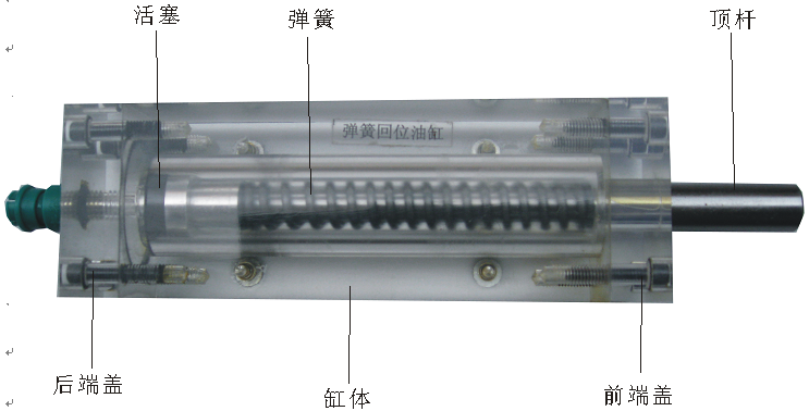 2、彈簧回位油缸的缸體,端蓋等均采用了進(jìn)口透明有機(jī)玻璃材料精制而成,透明清晰,頂桿采用45#中碳鋼材料,并配合油接頭、密封圈、內(nèi)六角螺絲等標(biāo)準(zhǔn)件裝配而成,通過(guò)它可明確地觀察到活塞、頂桿、油封、油孔、彈簧等結(jié)構(gòu)及其運(yùn)行過(guò)程,具有形象逼真,性能可靠等腰三角優(yōu)點(diǎn),它即可作為教學(xué)模型,也可作為液壓實(shí)驗(yàn)元件進(jìn)行實(shí)驗(yàn)演示。