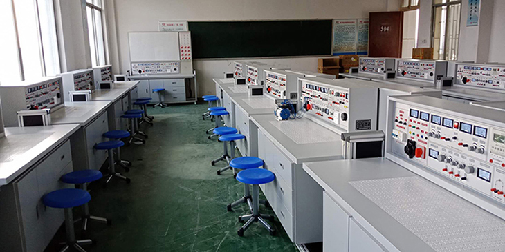 實驗臺具有較完善的安全保護措施,較齊全的功能。實驗操作桌中央配有通用電路插扳,電路插板注塑而成,表面均布有九孔成一組相互聯(lián)通的插孔,元件盒在其上任意拼插成實驗電路;元件盒盒體透明,直觀性好,盒蓋印有永不褪色元件符號,線條清晰美觀。盒體與盒蓋采用較科學的壓卡式結構,維修、更換元件拆裝方便。元器件放置在實驗操作桌下邊左右柜內(nèi),實驗時取存方便,大大提高了管理水平,規(guī)劃化程度,大大減輕了教師實驗準備工作。