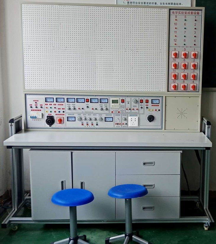 電子實驗臺具有較完善的安全保護措施,較齊全的功能(詳見實驗臺結(jié)構(gòu)簡介)。實驗桌中央配有通用電路板,電路板注塑而成,表面布有九孔成一組相互聯(lián)通的插孔,元件盒在其上任意拼插成實驗電路,元件盒盒體透明,直觀性好,盒蓋印有永不褪色元件符號,線條清晰美觀。盒體與盒蓋采用較科學的壓卡式結(jié)構(gòu),維修拆裝方便。元器件放置在實驗桌下邊左右柜內(nèi),大大提高了管理水平,規(guī)劃化程度,大大減輕了教師實驗準備工作。