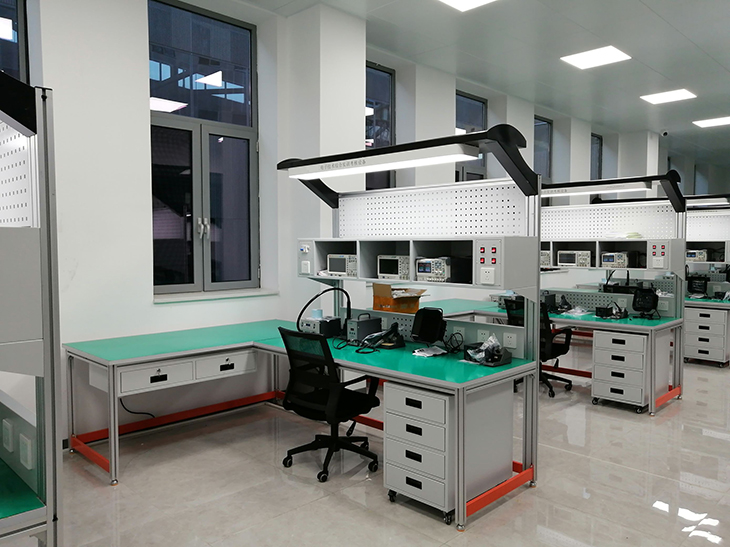 1.工作臺:桌身采用優(yōu)質(zhì)鋁型材做骨架,整機(jī)既堅(jiān)固耐用,美觀大方。桌面采用25mm厚高密度纖維板,外貼防火板,PVC截面封邊,桌面具有耐磨、耐熱、耐污、耐火、耐菌、防霉、抗靜電及易清潔等特點(diǎn)。工作臺設(shè)有防靜電配套裝置,桌面上方有實(shí)訓(xùn)屏、模塊盒安放橫梁、工具網(wǎng)孔板、高檔條形LED照明。