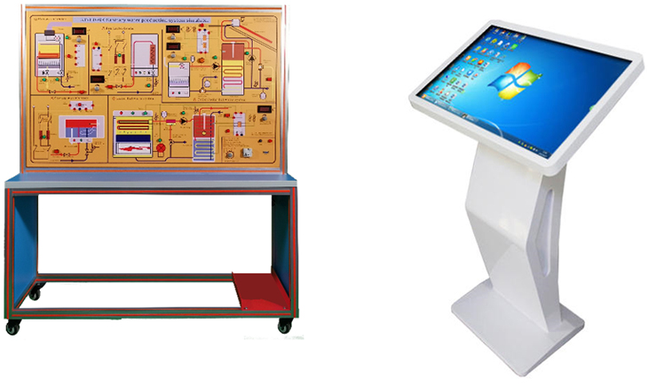裝置必須是專門設(shè)計的垂直框架,右邊是電腦控制平臺,這樣學生可以同時看到的理論和實踐研究的熱工原理。模擬器包含一個由PC操作的面板,面板上有一個彩色圖表,該圖表應清楚地顯示系統(tǒng)的結(jié)構(gòu),并應允許組件的以動畫形式展示。