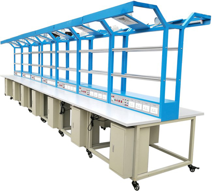 電子工藝實訓臺每臺包含2個工位,外形尺寸:長×寬×高≥1100mm×1200mm×2000mm(雙面型:設(shè)備背靠背,操作工位面對面)。
