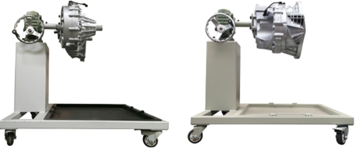新能源汽車變速器總成(附件齊全,易于拆裝),并裝在專用翻轉架上。采用減速翻轉機構,可使變速器旋轉任意角度,并能任意位置鎖止,便于學生從不同的角度進行拆卸和裝配。