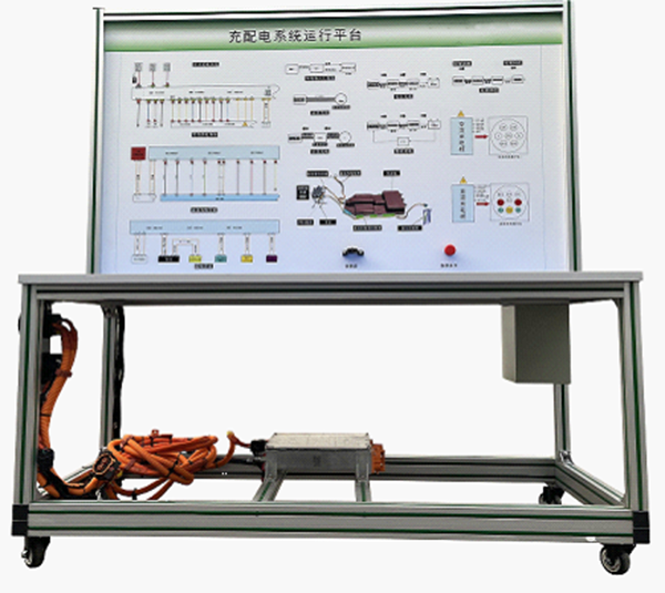 3純電動汽車)國標(biāo)充電槍與充電座、車載充電機、高壓配電箱(帶各類高壓繼電器與保險絲)與充電系統(tǒng)、高壓電控總成、漏電傳感器模塊、絕緣傳感器模塊、安全維修塞模塊、漏電模擬操作單元、高壓安全系統(tǒng)操作單元、操作控制臺、訓(xùn)練控制按鈕、一體化全鋁合金型材搭建的移動臺架(1500×700×1700mm
