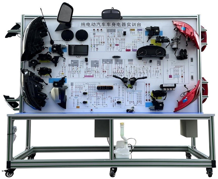 純電動汽車車身電器實訓(xùn)臺\該設(shè)備采用(高速)純電動汽車車身電器系統(tǒng)實物為基礎(chǔ),充分展示純電動汽車儀表系統(tǒng)、燈光系統(tǒng)、雨刮系統(tǒng)、喇叭系統(tǒng)、低壓電源電器系統(tǒng)、電動車窗系統(tǒng)、電動門鎖、音響系統(tǒng)等低壓電器系統(tǒng)的組成結(jié)構(gòu)和工作過程。適合于各類院校對純電動車車身電器系統(tǒng)理論和維修實訓(xùn)的拆裝與維護、結(jié)構(gòu)與原理認知、系統(tǒng)操作、功能動態(tài)演示、故障檢測與診斷教學(xué)需要。