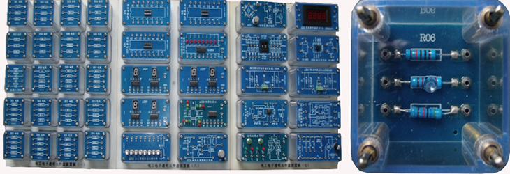 由120個透明模組成,模塊塊使用透明的元件盒子,可以正反觀察電子元件組成,各個電子元件分別安裝在PCB板上,做實驗時可以用導線連接,可以學習電子電路基礎、數字電路技術、電力電子技術,直流穩(wěn)壓電源技術、電壓測量等家電電路上的常用控制電路,