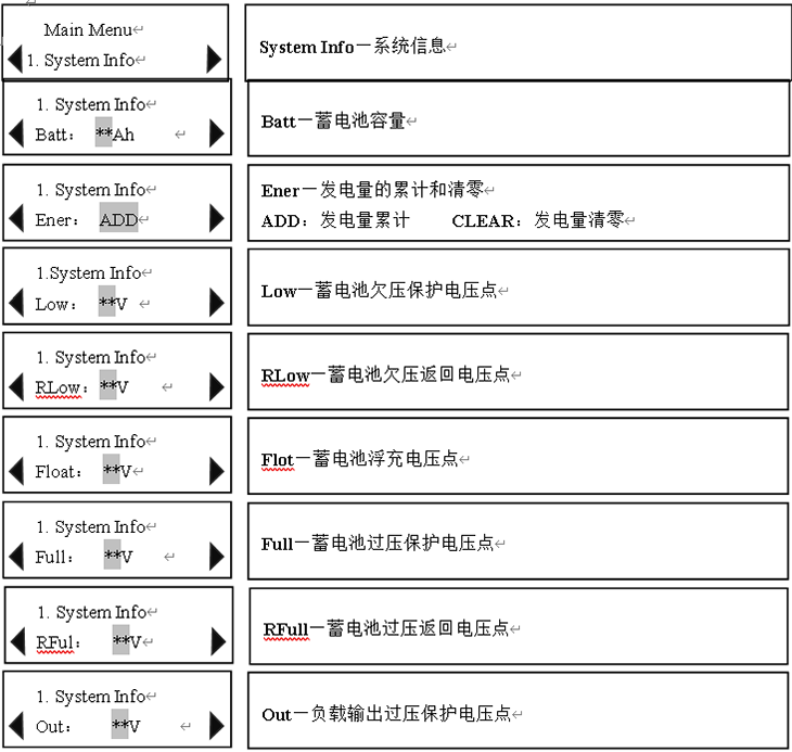 Ø 系統(tǒng)工作狀況、蓄電池的剩余電量等的變化;