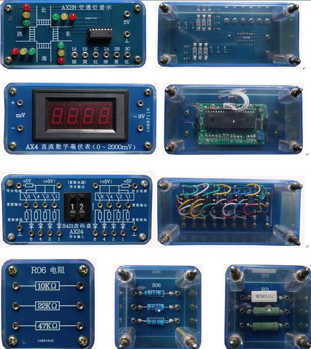 提供一套實(shí)訓(xùn)模塊,可以完成直流電路、模擬電子技術(shù)、數(shù)字電子技術(shù)和電子綜合應(yīng)用實(shí)訓(xùn)項(xiàng)目。實(shí)訓(xùn)模塊面板采用PCB板制作而成,器件和信號(hào)接口均已引至板上的專用插座,實(shí)訓(xùn)模塊有四個(gè)彈性插腳,與專用實(shí)訓(xùn)孔板配套使用。