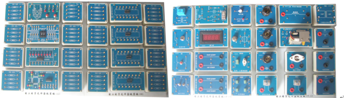 2、由學生獨立自主去搭建實驗、實訓電路,各種模塊精心配置,有多個應用組合部件,模塊采用透明有機盒,兼作實物示教,一舉多得。電工電子單元模塊共有156個,其中不僅包括實訓指導書項目所需的單元,還為學生可能進行的創(chuàng)新與探索,配置了較齊全的單元。