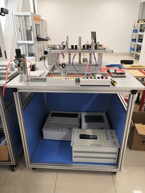 以后如果需要增加實(shí)驗(yàn),只需添加部件即可。信號(hào)接口通過(guò)端子排引出到面板,避免長(zhǎng)期訓(xùn)練,損壞PLC主機(jī)自身的端子。