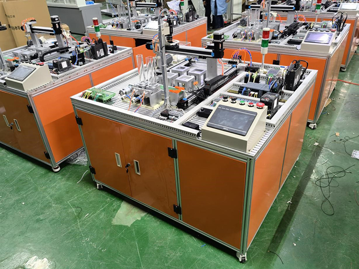 為了適應(yīng)國家對高端智能制造設(shè)備所需要的高技能人才的培養(yǎng),上海碩博科科教設(shè)備有限公司經(jīng)多方調(diào)研及深度校企合作研發(fā)出系列工業(yè)機(jī)器人應(yīng)用與維護(hù)專業(yè)實訓(xùn)考核系統(tǒng)設(shè)備。該系統(tǒng)符合"四個定位":即職業(yè)技能競賽的定位;技能培訓(xùn)與鑒定的定位;做一體化教學(xué)改革的定位;符合高技能人才培訓(xùn)基地的定位。并符合國家對"關(guān)于進(jìn)一步深化中等職業(yè)教育教學(xué)改革的若干意見"的文件精神,緊緊圍繞以國家職業(yè)標(biāo)準(zhǔn)為依據(jù),以綜合職業(yè)能力培養(yǎng)為目標(biāo),以典型工作任務(wù)為載體,以學(xué)生為中心,根據(jù)典型工作任務(wù)和工作過程,設(shè)計新的課程體系和內(nèi)容,按照工作過程的順序和學(xué)生自主學(xué)習(xí)的要求進(jìn)行教學(xué)設(shè)計和安排教學(xué)活動,實現(xiàn)理論教學(xué)與實踐教學(xué)融通合一,能力培養(yǎng)與工作崗位對接合一,使實習(xí)與頂崗工作學(xué)做合一,最終培養(yǎng)學(xué)生的技術(shù)能力、方法能力和社會能力。